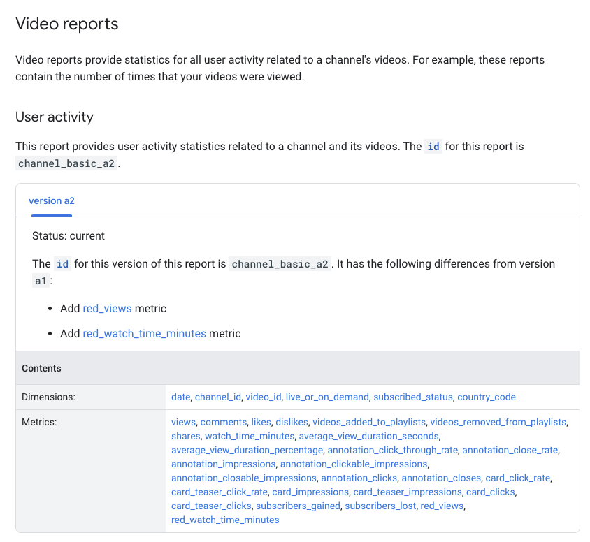 3. YouTube Reporting API 방식 으로 제공되는 Channel Reports