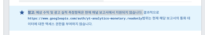 Channel Reports 에는 예상 수익 및 광고 실적에 대한 정보가 없다. 그리고 신기한 점이 제공 API에 따라 같은 Channel Reports라도 제공되는 보고서가 다르다.