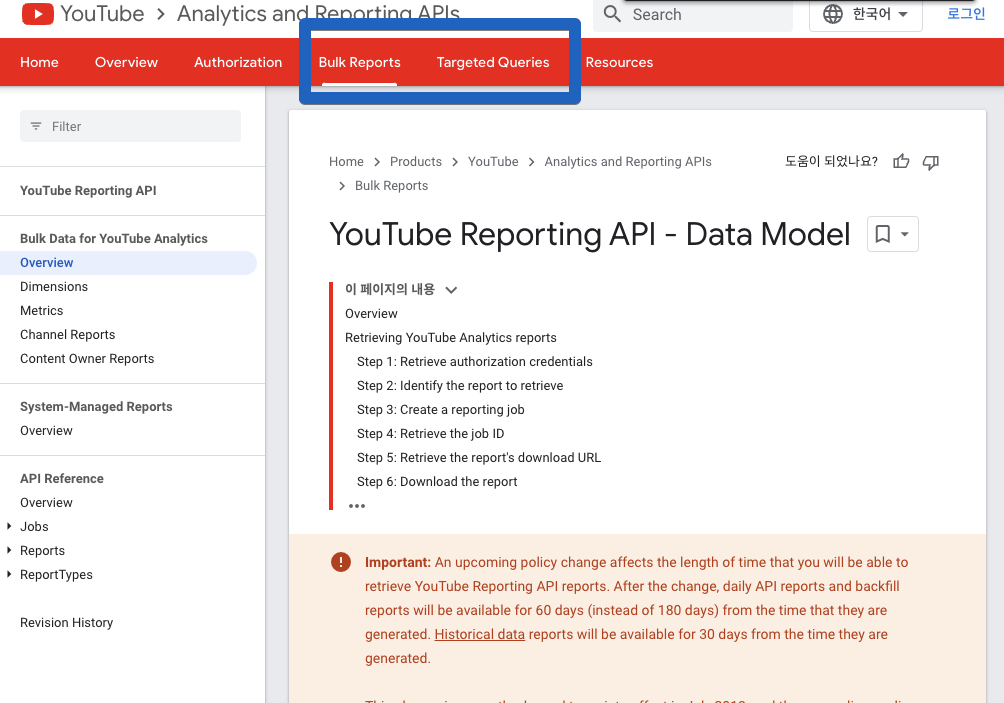 YouTube Reporting API 방식