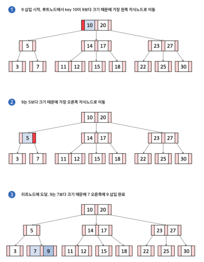 리프노드 공간이 널널 할 경우: 트리 탐색하면서 적절한 자리 찾아서 넣으면 됨