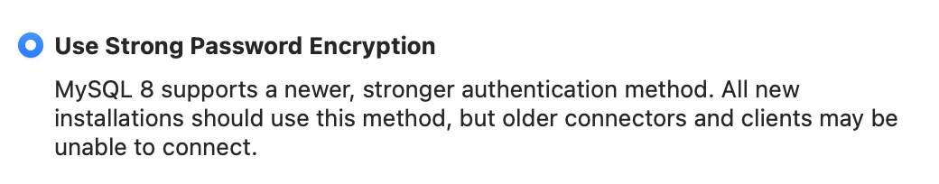 mysql 8.0 버전 부터 기본 인증방식이 Native Authentication 방식에서 Caching SHA-2 Authentication 방식으로 바뀌었다.
