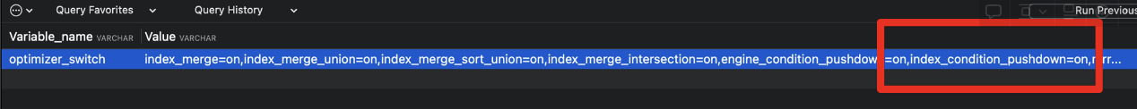 set optimizer_switch='index_condition_pushdown=on'; show variables like 'optimizer_switch';